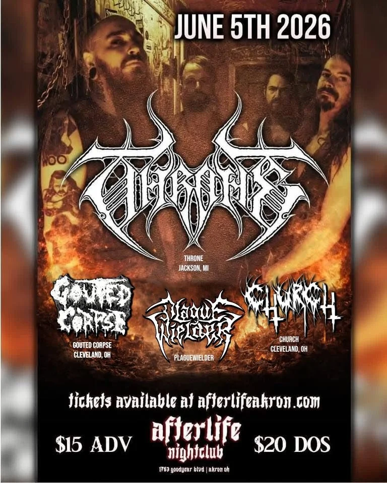 Throne comes to the Afterlife Nightclub on June 5th 2026 With support from Gouted Corpse (Cleveland, OH) and Church (Columbus, OH)